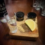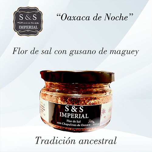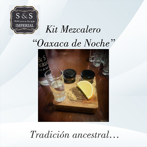 con gusano de maguey y flor de sal con chapulín con tablita mezcalera